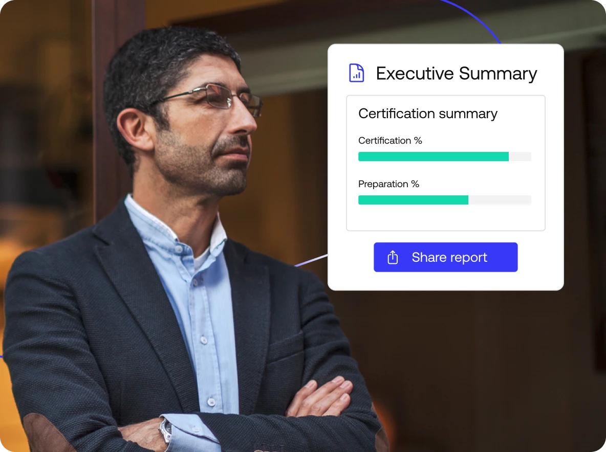 Sharable audit logs, AI-generated compliance docs, and customizable reporting for any standard.