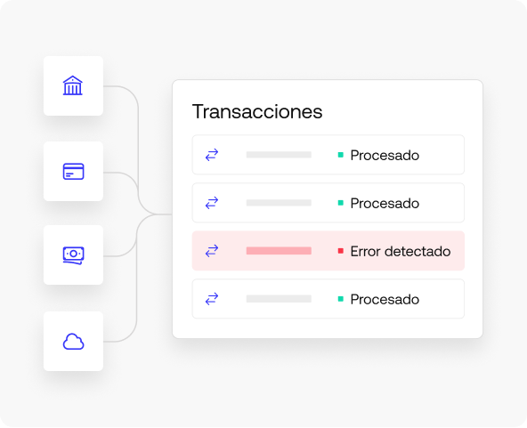 Automatiza la conciliación de punta a punta en una plataforma que integra todas tus fuentes de datos y sistemas en un solo lugar.
