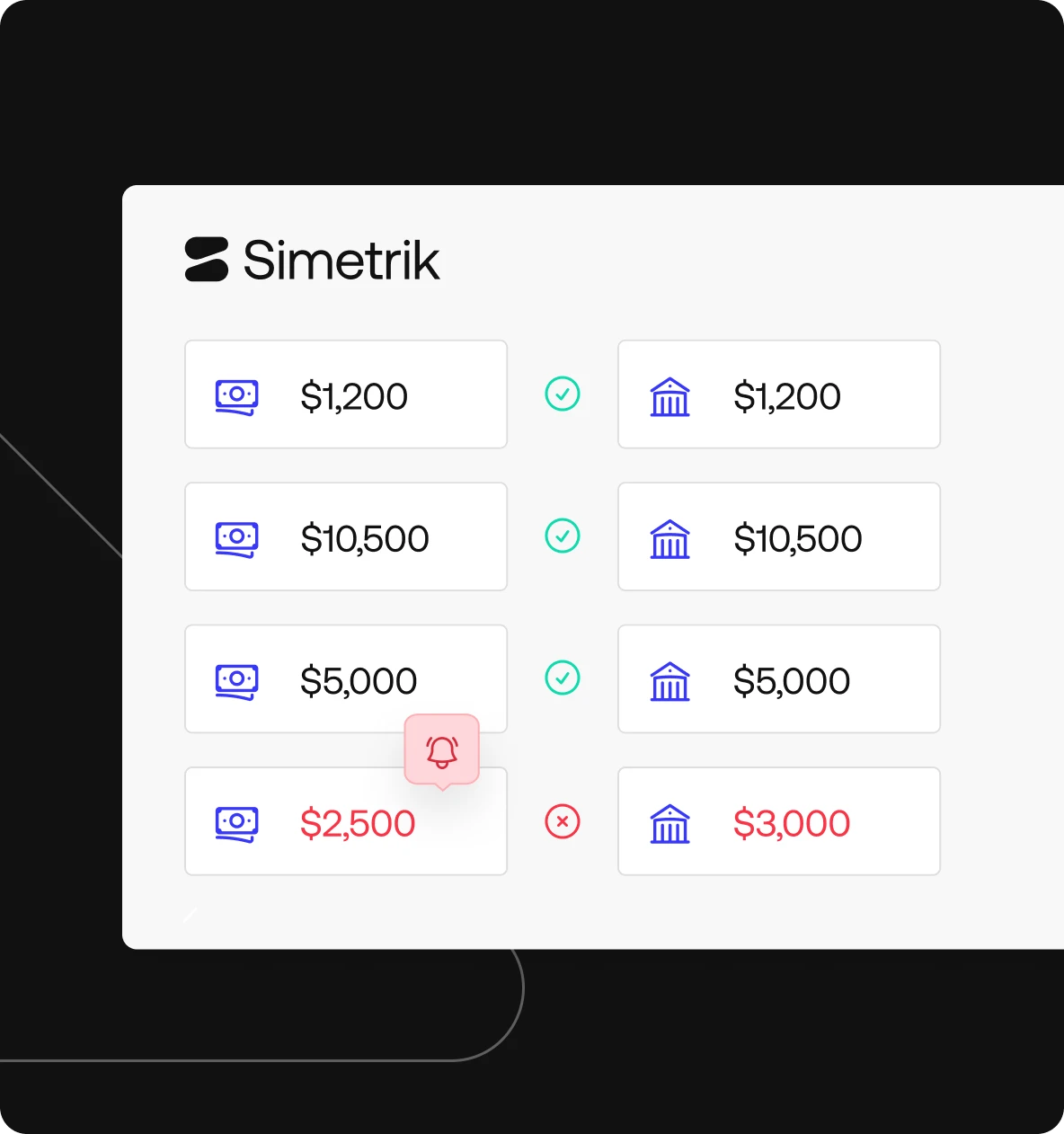 Match transactions with records from your banking partners, merchants, and other payment platforms, then reconcile outputs against internal balances.