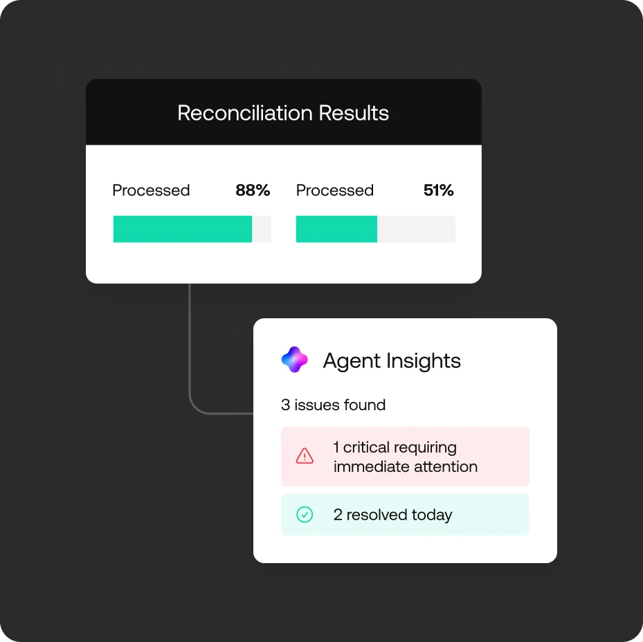Automated alerts and agent-powered workflows that resolve discrepancies fast.